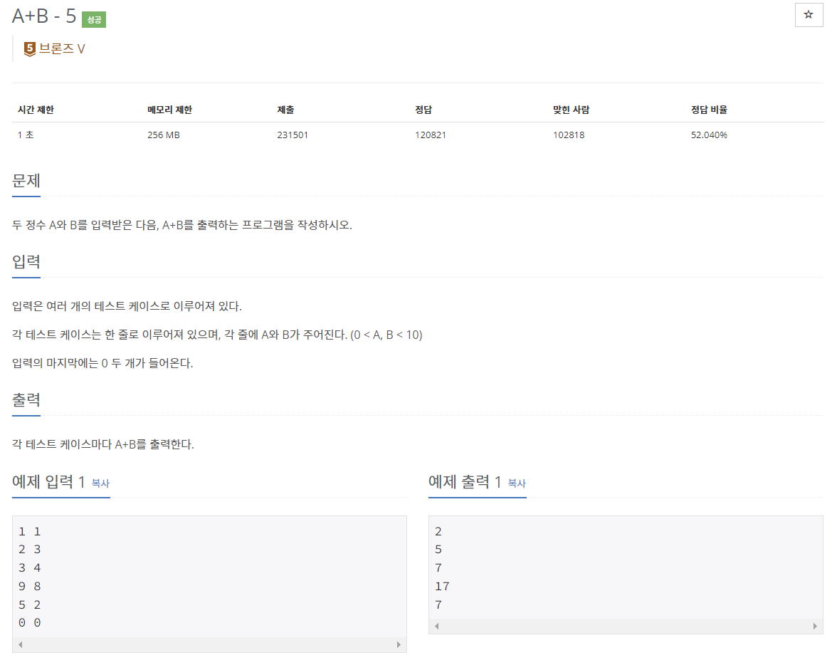 두 정수 A와 B를 입력받은 다음, A+B를 출력하는 프로그램을 작성하시오.
