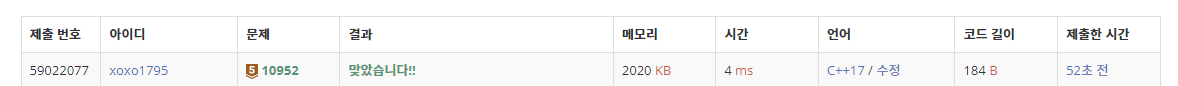 | [백준] 10950번 : 'A+B - 3' - (C++) (0) | 2023.04.08 |
