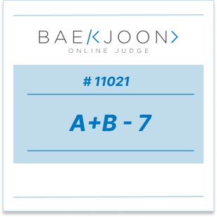 | [백준] 11022번 : 'A+B - 8' - (C++) (1) | 2023.04.09 |