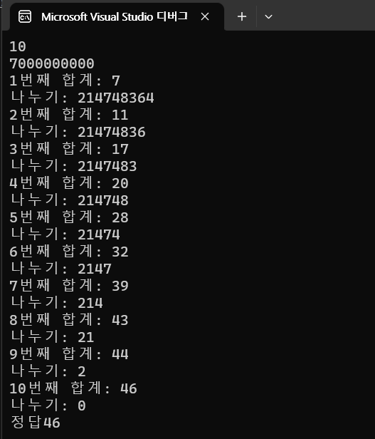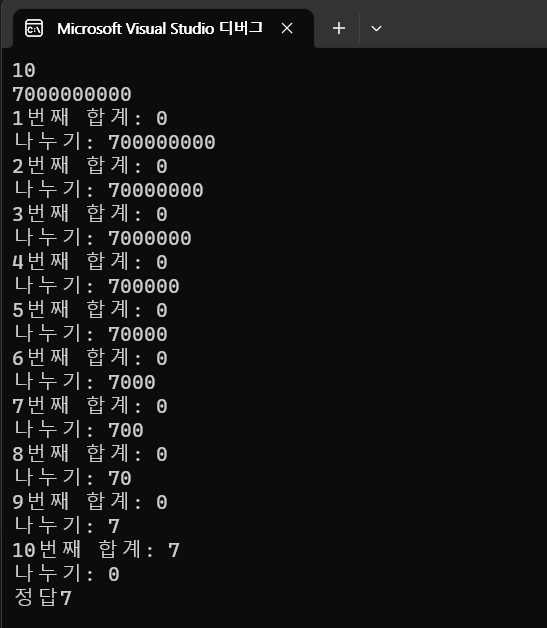 → 범위가 –9,223,372,036,854,775,808 ~ 9,223,372,036,854,775,807인 long long으로 고치니 대략 10자리의 값은 해결이 되었지만, 여전히 25자리인 테스트 케이스 3에서 오류가 발생함.