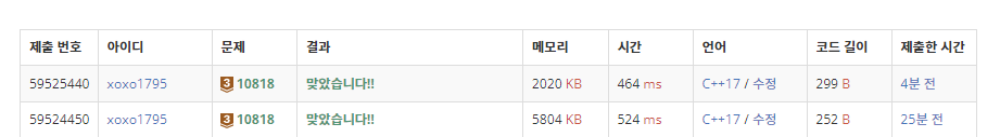 위에서부터 차례대로 두 번째 풀이(배열 사용 X) → 첫 번째 풀이 (배열 사용)이다.