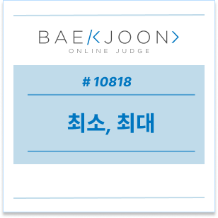 for문을 통해 array에 입력받은 값을 저장하고, sort() 함수를 이용해 오름차순으로 정렬해 최솟값, 최댓값을 구한다.