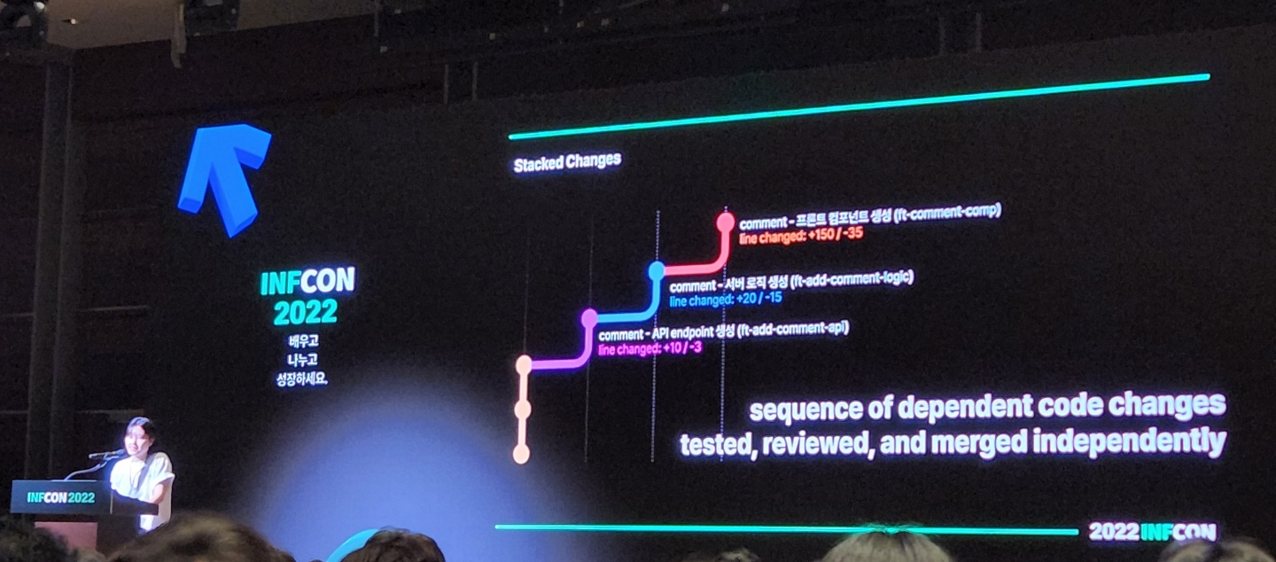 '코드 리뷰의 또 다른 접근 방법' 세션에서는 오픈소스 CLI 툴인 'Graphite'에 대해 소개해주셨습니다. 협업 시에 무척 유용하며 PR의 순서를 리스트로 가시화해주어 팀 내 협업 시 유용한 툴입니다. (https://graphite.dev/)