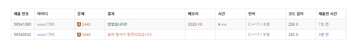 첫 번째 풀이 - '출력 형식이 잘못되었습니다' 오류 발생