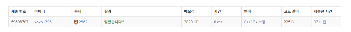 | [백준] 2475번 : 검증수 - (C++) (1) | 2023.04.20 |