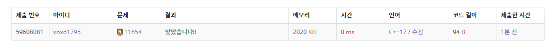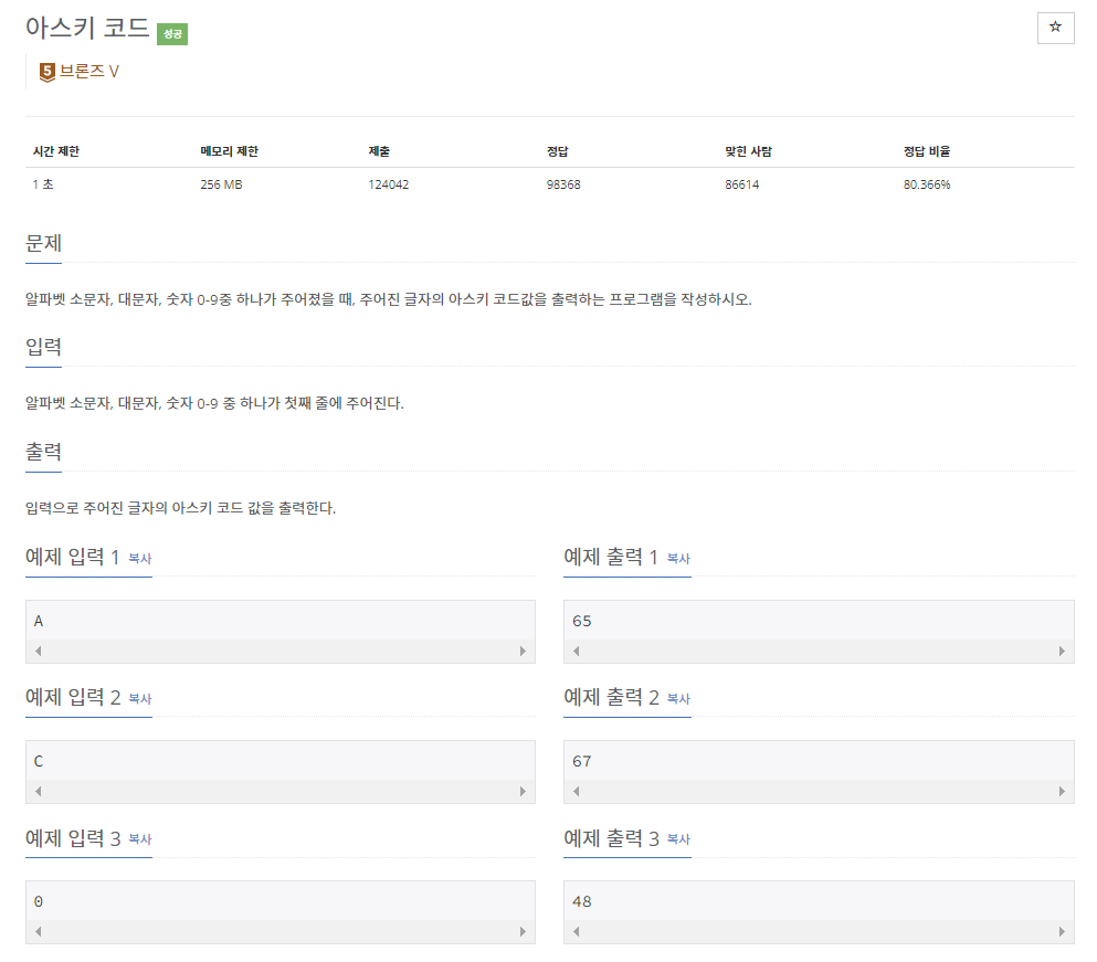 11654번: 아스키 코드