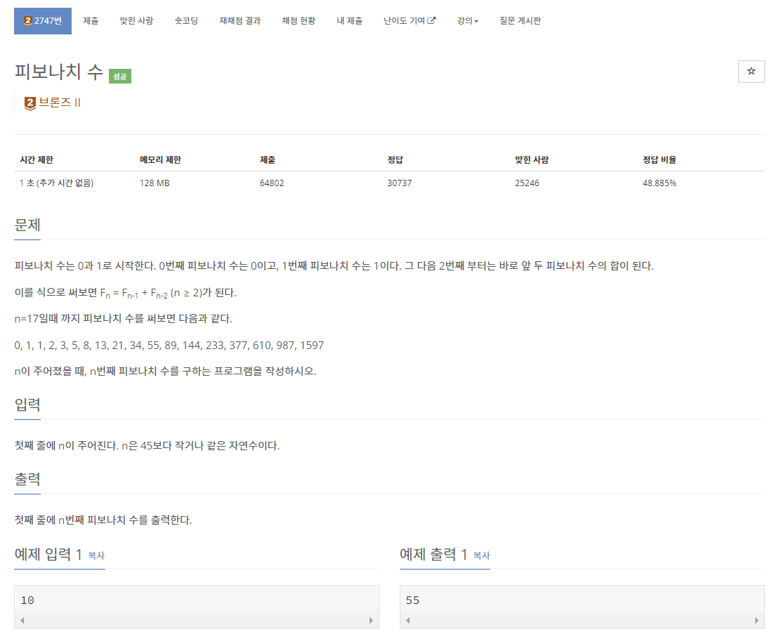 | [백준] 2748번 : 피보나치 수 2 | int & long long 범위 (C++) (2) | 2023.05.24 |