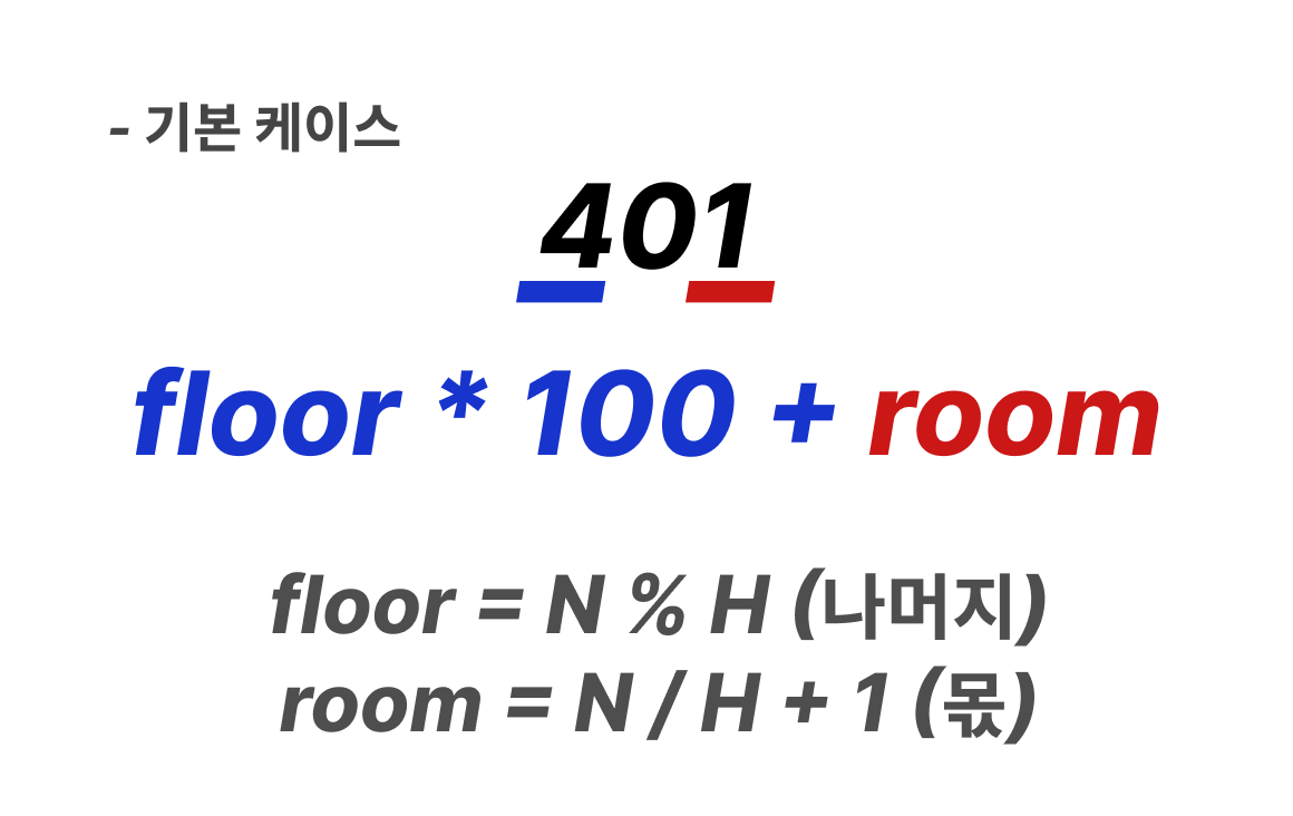 이때, 기본적인 경우에는 아래와 같이 호실을 계산할 수 있다.