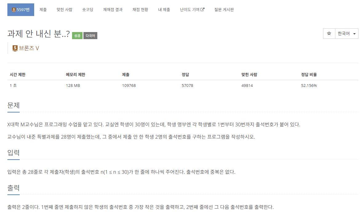 array의 원소를 모두 0으로 초기화한 후, for문과 arr[입력된 숫자]를 1로 저장했다.