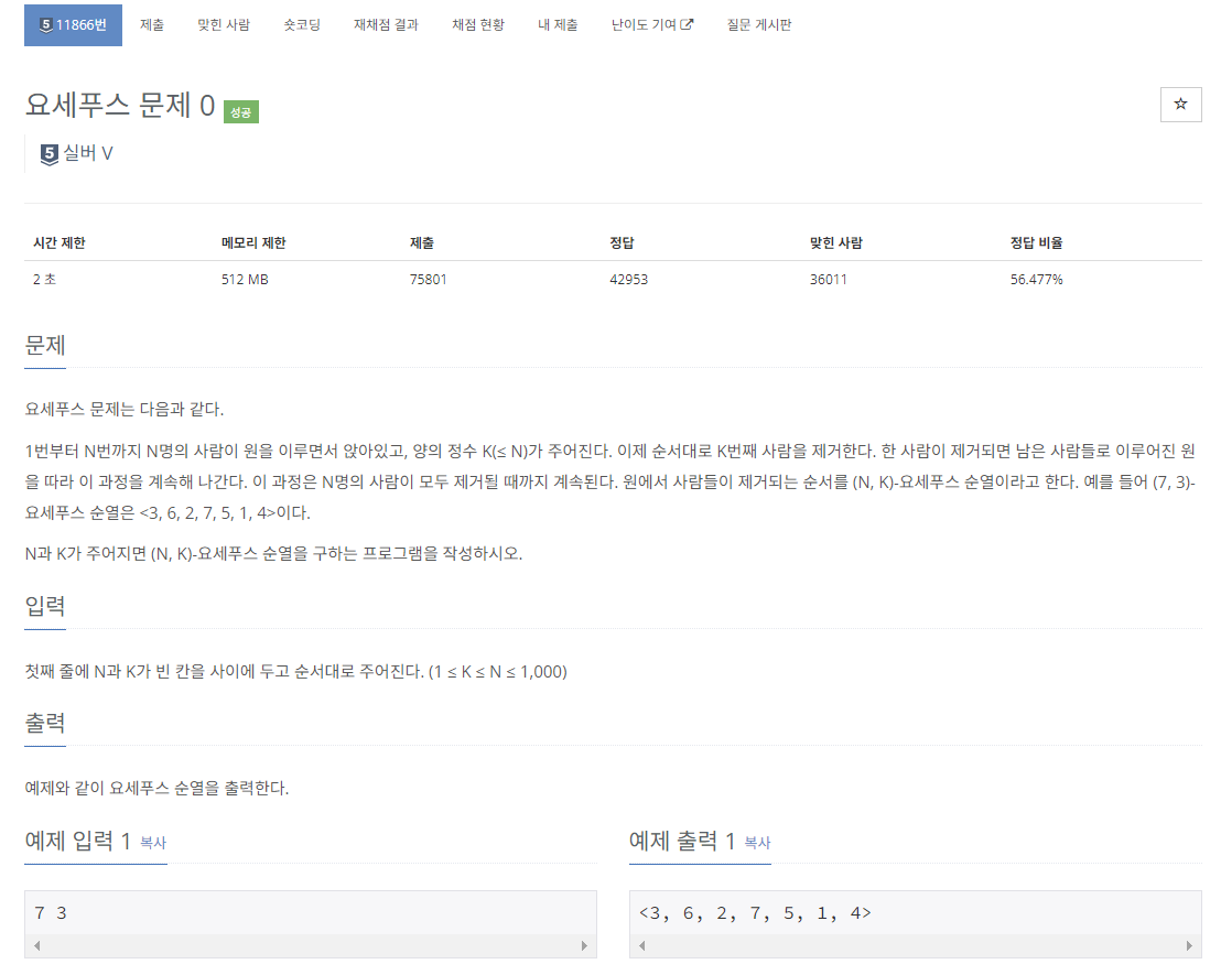 11866번: 요세푸스 문제 0