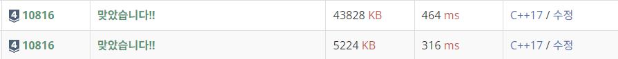 - 문제를 맞춘 후, unordered_map을 이용해도 가능한 것을 확인해 사용해보았다. O(1)