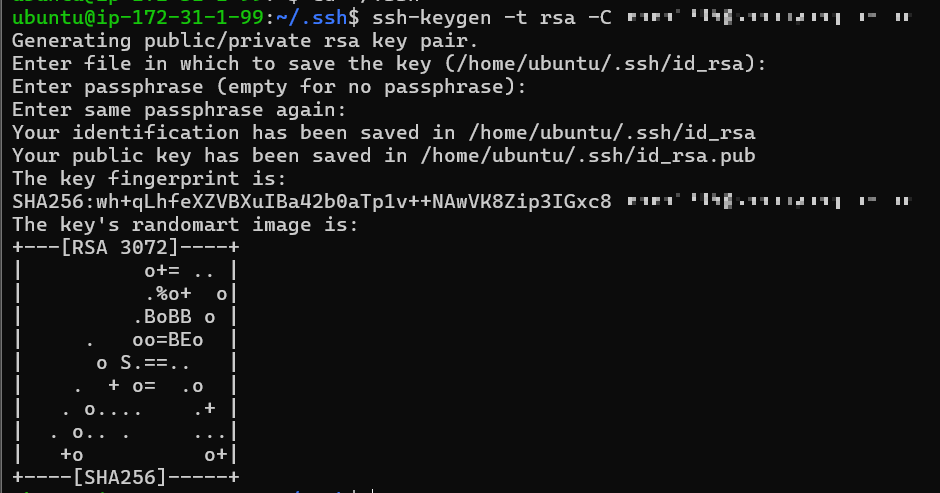 이제 깃을 클론해줍니다. 만약, private 레포지토리라면 ssh 키를 다음과 같이 생성해주어야 합니다.