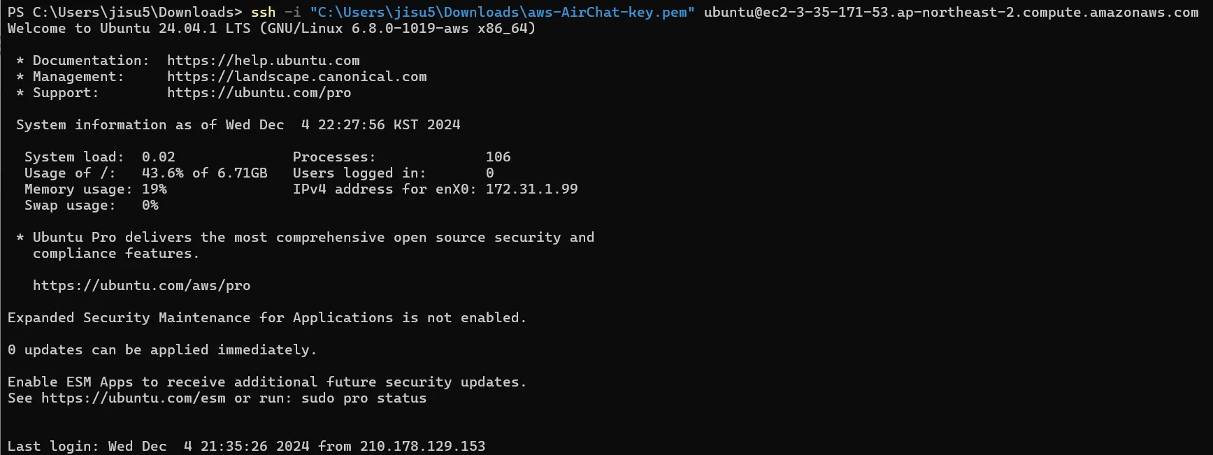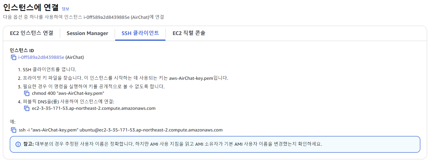ssh -i "aws-AirChat-key.pem" ubuntu@ec2-3-35-171-53.ap-northeast-2.compute.amazonaws.com