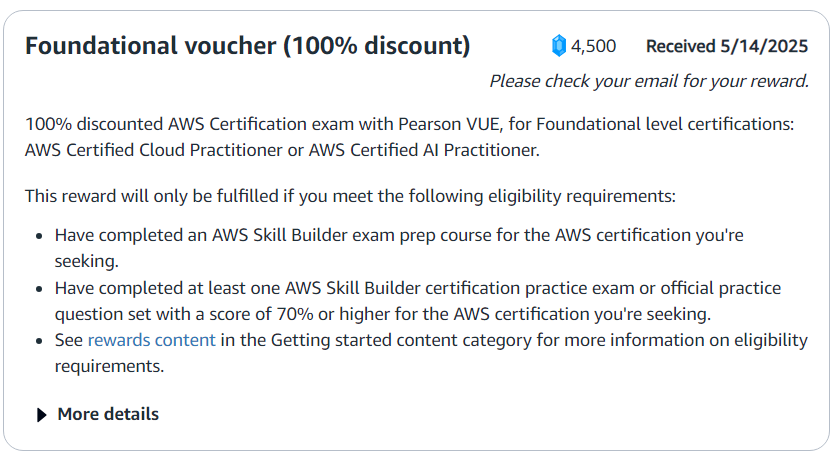 나는 AWS Education(https://www.awseducate.com/student/s/content)을 통해 credit을 모아 100% Voucher를 받아 무료로 시험에 응시했다. 더 자세한 이야기는 상단에 첨부한 AWS SAA 합격 후기 글에 나와있다!