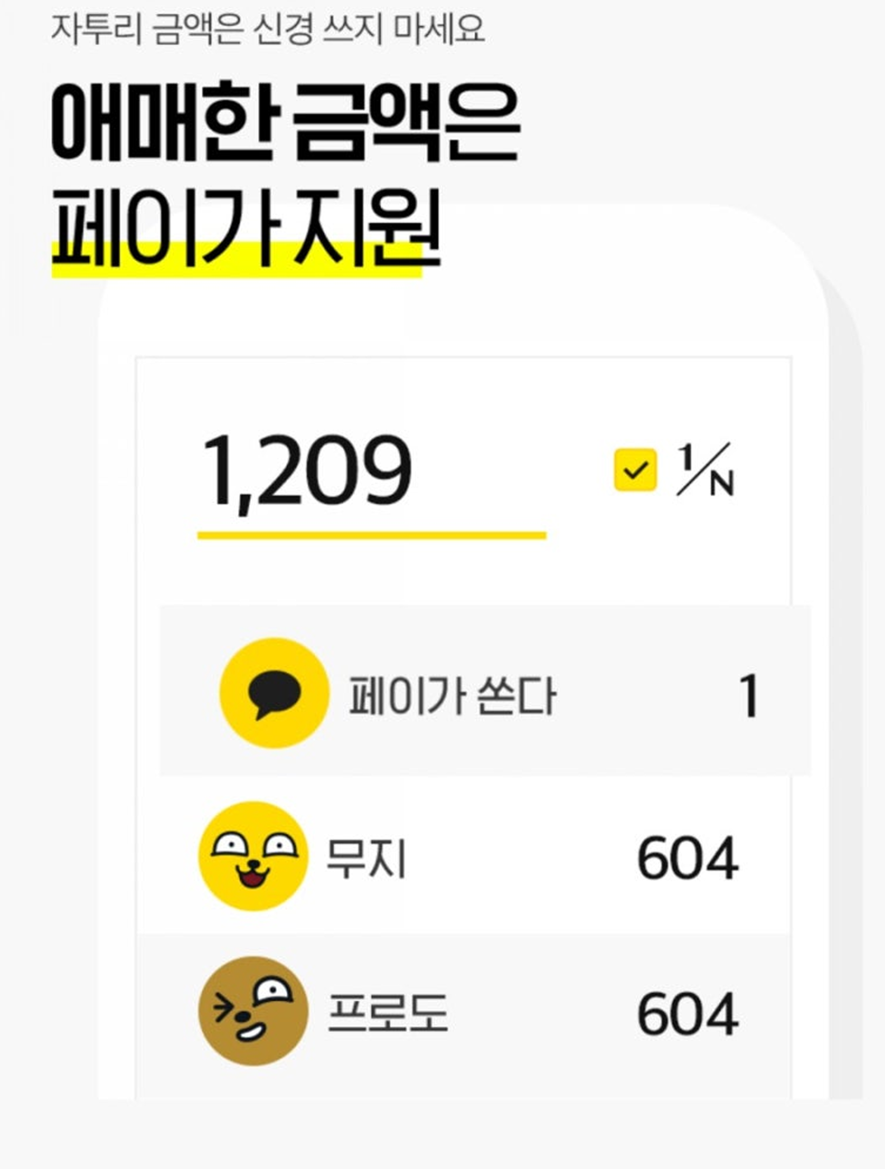 카카오페이는 여러 명이 금액을 나눌 때 잔액이 생기면 플랫폼이 대신 부담한다.